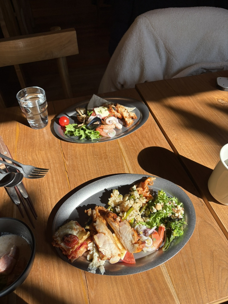 고기랑, 파스타 같은 종류는 하나 선택해서 먹을수 있는데 맛있었다.